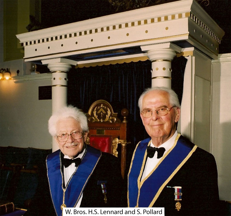 This significant move was implemented in 1964 and it is of great credit to the Lodge that such a sensitive issue was managed with great skill and that not a single member was lost as a result of that decision. The two heroes or villains depending on your point of view are of course here today and I would ask W. Bro. Sam Pollard and W. Bro. Syd Lennard to take a bow.